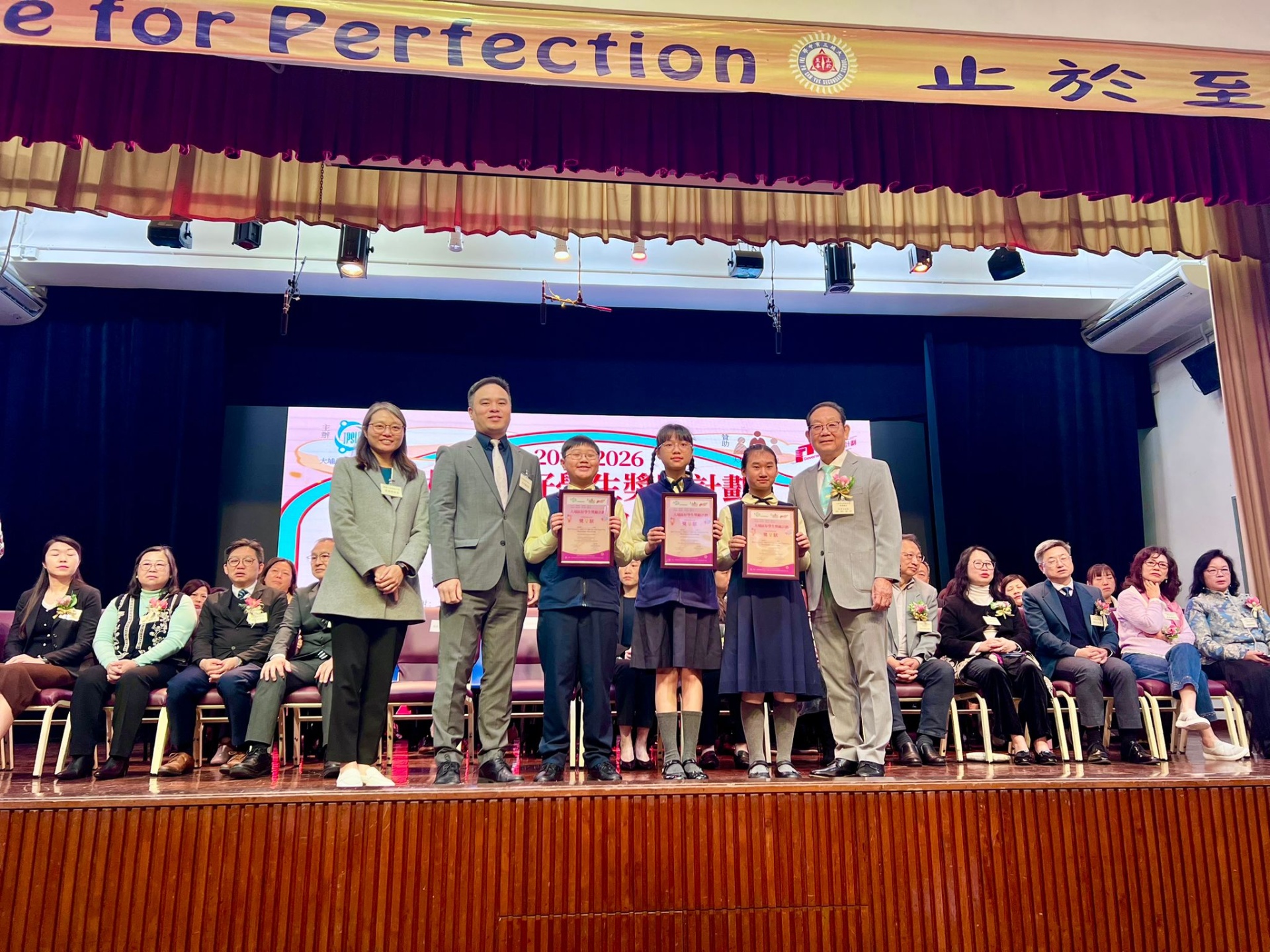 本年度本校共371位學生於獎勵計劃中獲獎,其中6C陳曦媛、6C潘楚熙及6D 謝皓迅更榮獲「表現突出學生」之榮譽,獲獎名單已張貼於各樓層「銀禧表揚區」旁。