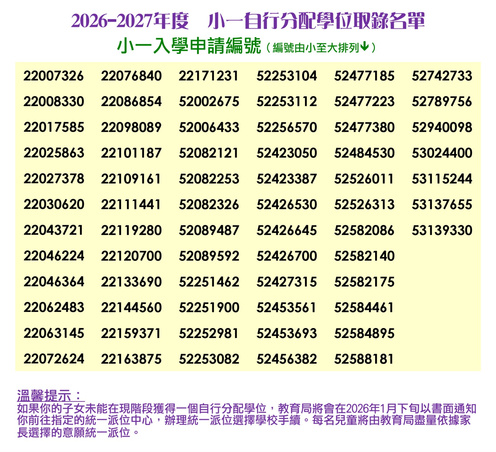 小一統一派位註冊需知